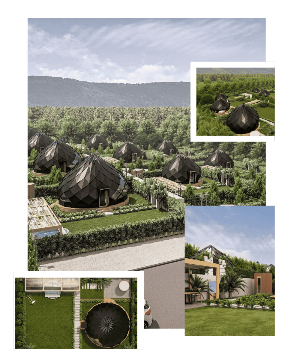 Nel progetto che abbiamo realizzato per l'Austria, abbiamo creato una struttura unica nel suo genere, combinando 5 casette per pangolini di 8 metri di diametro e 6 casette per pangolini di 7 metri di diametro. Abbiamo progettato i nostri edifici in armonia con la natura, lasciando ampie aree verdi sulle verande. Questo progetto vuole offrire ai suoi ospiti un ambiente tranquillo ed estetico, fondendo design moderno e verde.