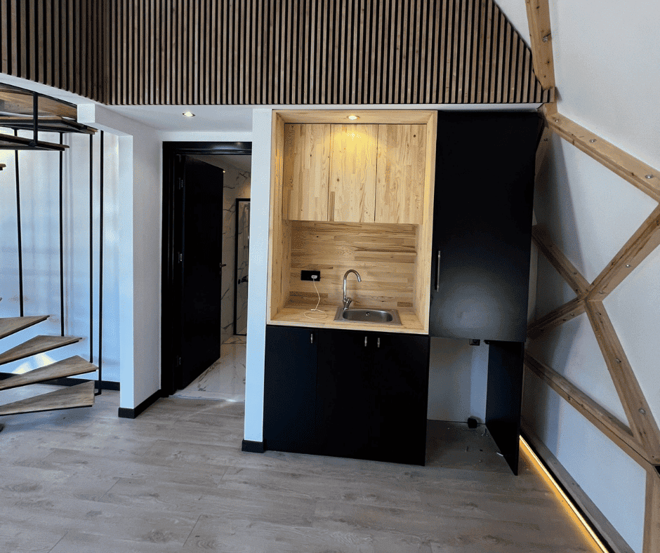 Roomia Pangolin evler, kullanıcılarının yaşam biçimine ve ihtiyaçlarına göre şekillendirilebilecek esnek iç mimari olanakları sunar. Yatak alanı, mutfak, banyo ve yaşam bölümü farklı ihtiyaçlara göre konumlandırılabilir. İster sade ve açık planlı bir stüdyo yaşamı tercih edin, ister bölmeli ve fonksiyonel alanları olan bir plan… Roomia, tasarımı tamamen size özel hale getirebilir.